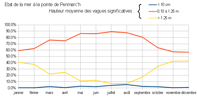 Exemple, hauteur des vagues à la pointe de Penmarc'h (Finistére Sud), en trois courbes :