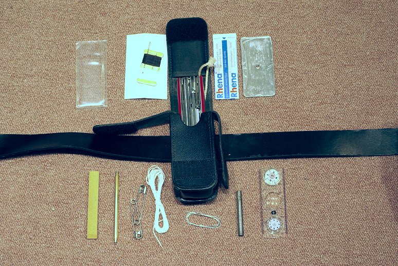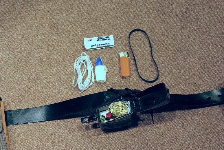 entre un petit container étanche, l'étui du Victorinox, et